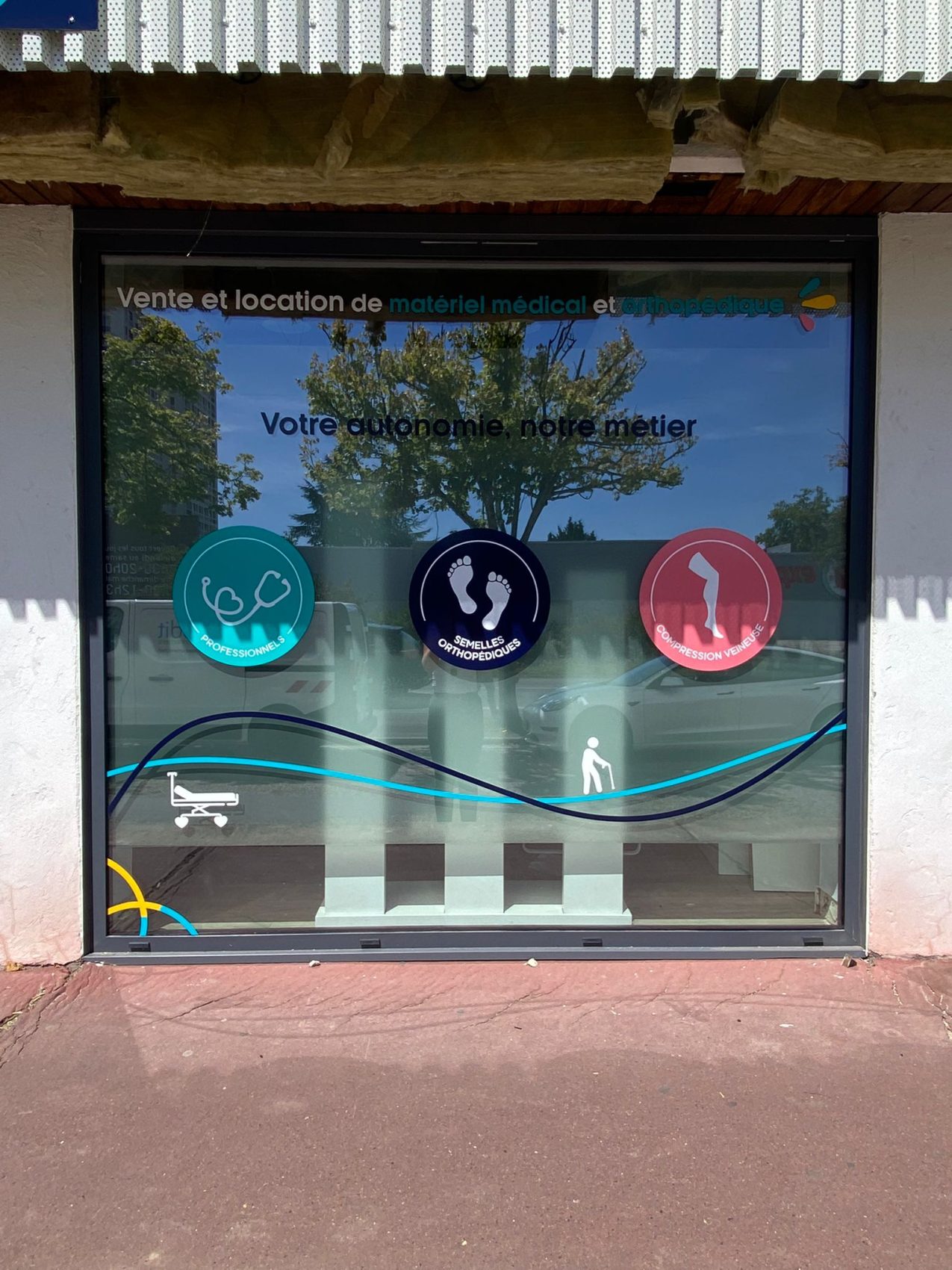 La vitrophanie est une décoration de vitrine adhésive collée sur les parties vitrées de la devanture de votre établissement (commerce, agence, entreprise, etc.). Elle peut prendre différentes formes (opaque, transparent, semi-transparent, partiel, total, etc.), pour répondre à tous vos besoins. La vitrophanie de magasin est créée, imprimée et posée aux couleurs de votre enseigne. La vitrophanie peut aussi avoir un usage pratique, comme protéger des rayons UV (film solaire) ou garantir la confidentialité (dépoli).