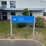 Le panneau bi-mât est un support de signalétique extérieure, fixé au sol de façon permanente. Les panneaux bi-mâts servent à orienter les visiteurs vers vos locaux dans des zones industrielles, des parcs d’activités, des complexes commerciaux, etc., ou bien vers un lieu spécifique comme une aire de stationnement, un accueil pour la livraison, etc.