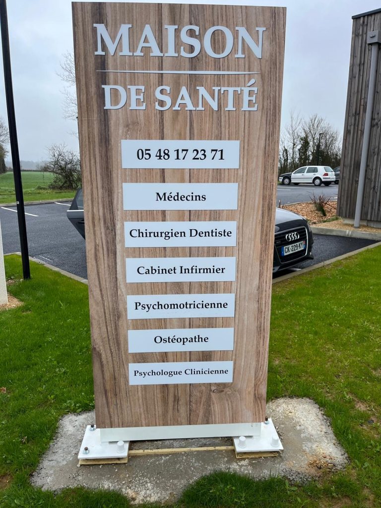 Enfin, vous pouvez aussi choisir de faire installer un totem lumineux. Les faces du totem sont alors en PMMA (Poly Méthacrylate de Méthyle Acrylique) diffusant, un plastique transparent par nature appelé couramment plexi ou plexiglass. Ainsi, la lumière peut se diffuser lorsque le totem est allumé. Votre message ou vos informations restent visibles dès que le jour baisse.