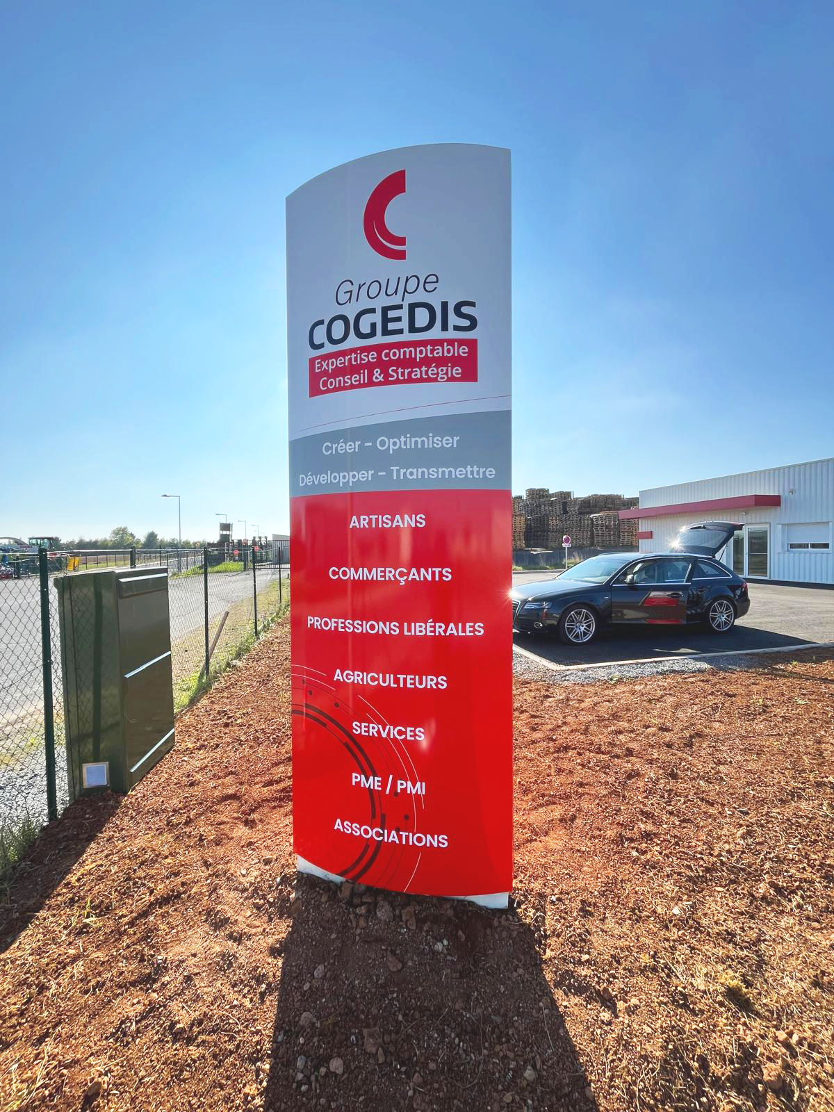 Vous avez besoin de mettre à jour votre logo ou une nouvelle société intègre votre immeuble d’entreprises ou parc d’activités, et vous devez modifier le totem extérieur ? Il est possible de changer uniquement les lamelles du totem concernées : un gain de temps et d’argent.